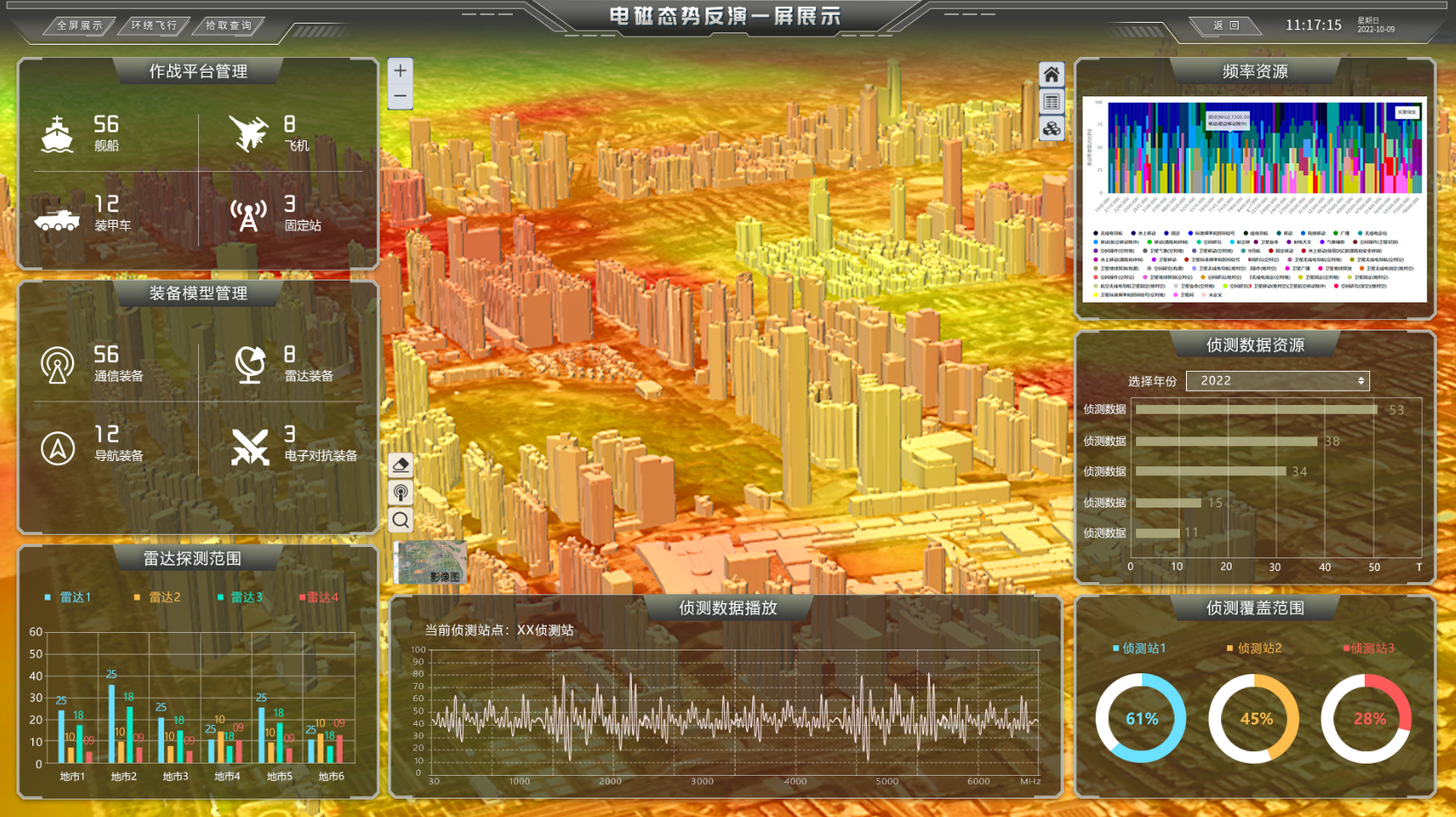 实现战场电磁频谱实时感知,异常状况主动预警,提升要地电磁防护能级;