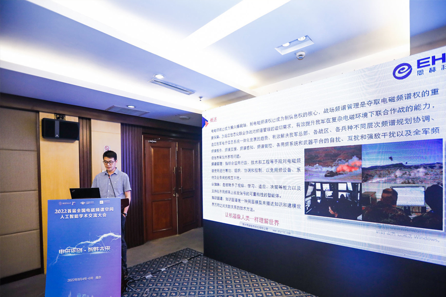 恩赫科技总经理张海峰在“电磁频谱智能感知与管控专题论坛”做了技术汇报,分享了我司基于知识图谱的频谱管理与可视化创新技术成果。